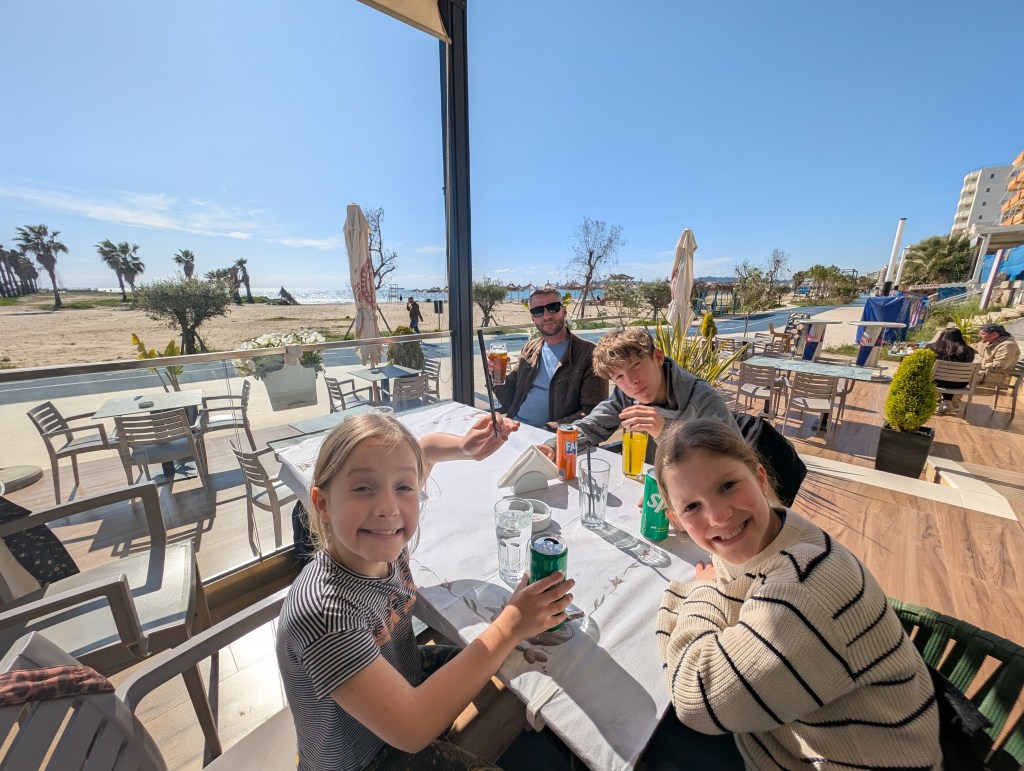Sarandë had that unmistakable holiday vibe—beach bars, lively restaurants, and a laid-back, seaside buzz. It’s easy to see why it’s one of the most talked-about spots in Albania. That said, I couldn’t help but wonder how the town handles the summer rush. The beaches aren’t huge, and while it was ideal for us—still early in the season, with fewer tourists around (we were the only Brits, and the only ones brave enough to dip in the sea!)—I imagine it could feel a bit overwhelming in the height of summer.