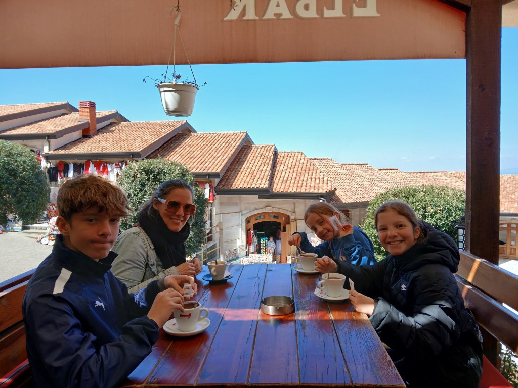 Day 3: We wanted to see some views (love a view), so we aimed for Gamti Mountain to see the Bovilla reservoir. You can’t drive up in a hire car, so we booked a guided tour through Get Your Guide—just over £50 for all five of us. The hike wasn’t too long, but it did involve scrambling over rocks and the safety setup is pretty bare-bones. Still, the kids managed it just fine, and the views from the top? Absolutely stunning—totally worth the climb.